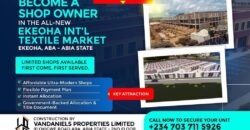 Whether you’re a trader, entrepreneur, or investor, this is your opportunity to own a space in one of Southeast Nigeria’s most iconic commercial centers. Redesigned for the future of commerce.